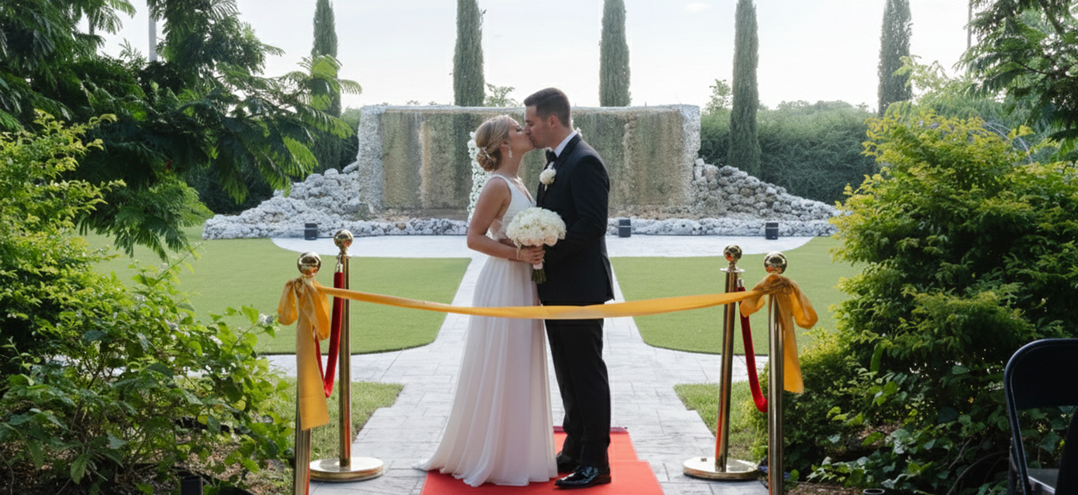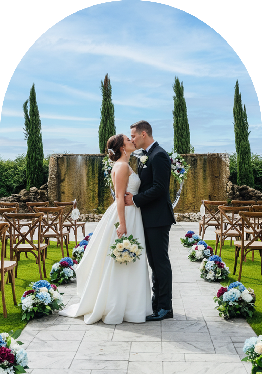 A secluded outdoor villa tucked into a peaceful corner of Miami, this European-inspired venue offers lush, romantic backdrops for unforgettable celebrations. Accommodating up to 300 guests, the open-air setting features a dedicated ceremony space with waterfalls, a geometric garden, reception pergola, spacious dining and dancing areas, and a premium bar.